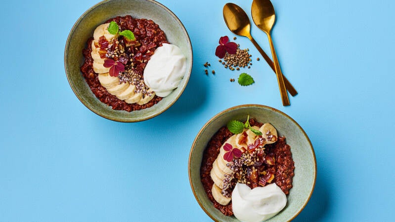 Voeg er eventueel nog wat plakjes banaan aan toe en wat Skyr vanille.